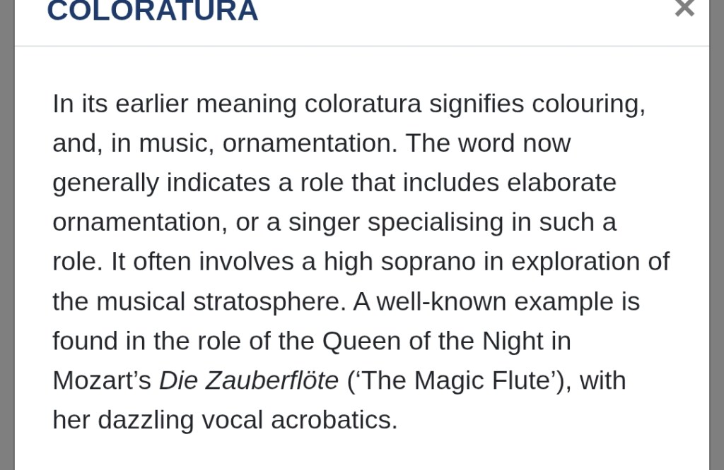 Today’s prompt was to use a musical / art term you are unfamiliar with as a point of inspiration. I liked this term. It means ornamentation in a musical sense … Continue reading Day One: Coloratura